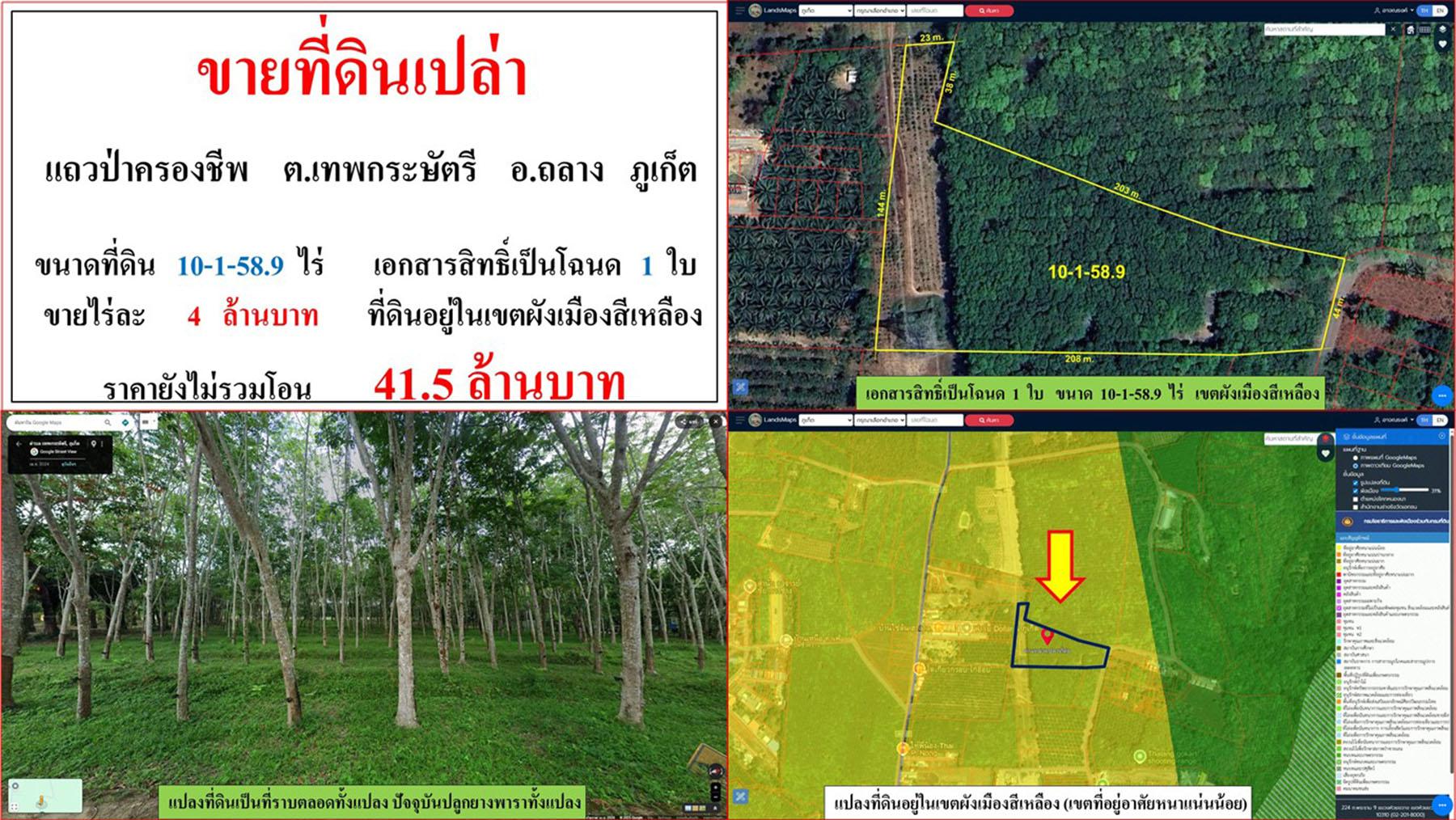 ขายที่ดินเปล่า ขนาด 10-1-58.9 ไร่ แถวป่าครองชีพ ต.เทพกระษัตรี อ.ถลาง ภูเก็ต