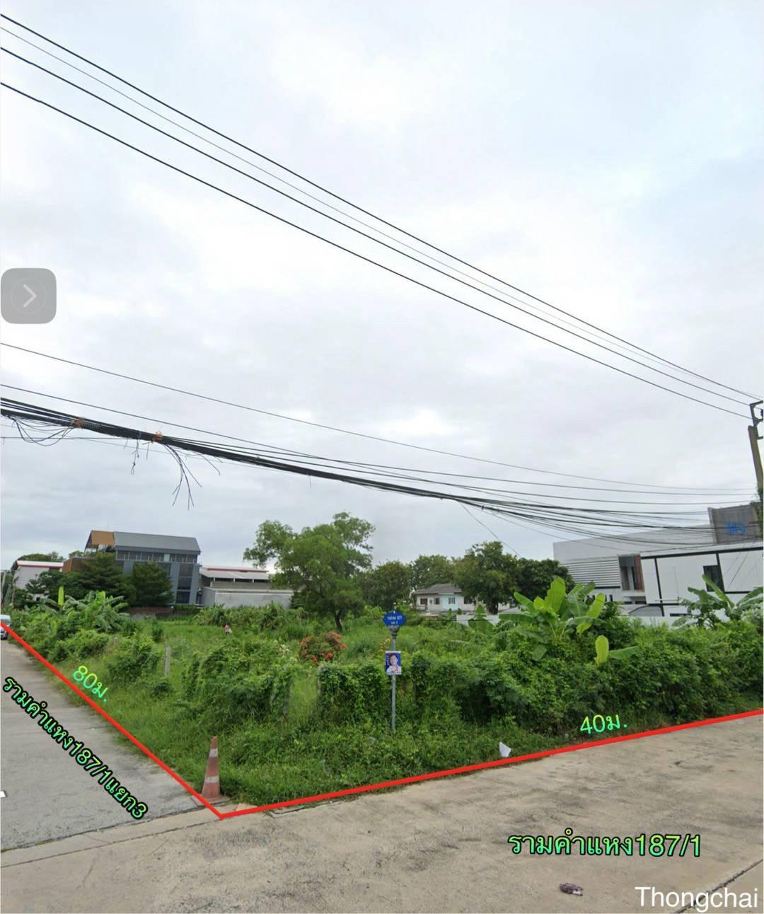 R68-077ขายที่ดิน 1-3-99 ไร่ ซอยรามคำแหง 187/1 เส้นเมนแปลงมุมด้านข้างติดแยก 3 ที่ดินรูปสี่เหลี่ยมผืนผ้าสวยมาก ที่ดินถมแล้ว หน้ากว้าง80ม.ลึก40ม.