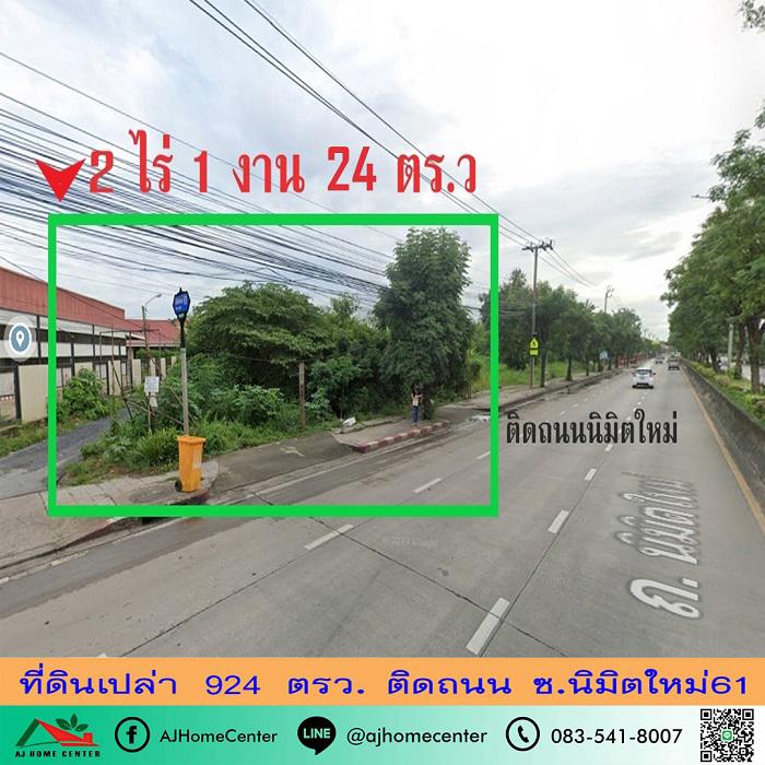 ขายที่ดินเปล่า 924 ตารางวา ซ.นิมิตรใหม่61 แปลงมุม ถมแล้ว
