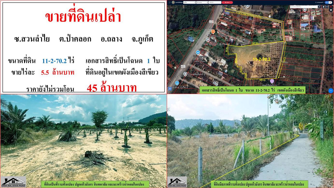 ขายที่ดินเปล่า ขนาด 11-2-70.2 ไร่ ซ.สวนลำใย ต.ป่าชคลอก อ.ถลาง ภูเก็ต