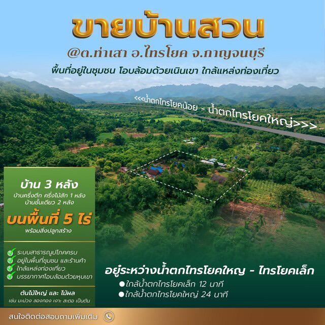 ขายบ้าน 2 ชั้น ครึ่งไม้สักครึ่งตึก 4 ห้องนอนพร้อมที่ดิน จำนวน 5ไร่ (ภบท. 5) และบ้านหลังเล็กชิ้นเดียวอีก 2 หลัง อยู่ หมู่ 8 ต. ท่าเสา อ.ไทรโยค จ.กาญจนบุรี