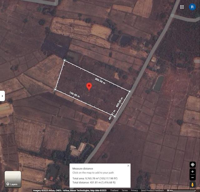 ที่ดินขนาด 6 ไร่ หน้ากว้างประมาณ 65 เมตร ลึกประมาณ 145 เมตร