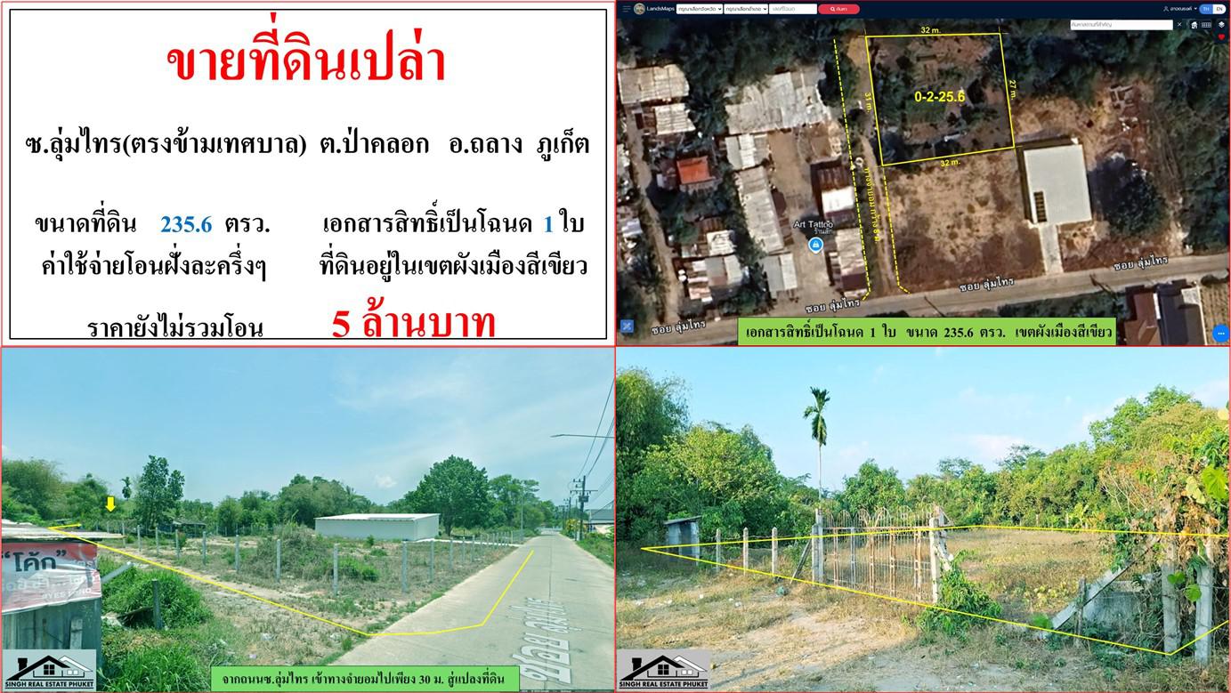 ขายที่ดินเปล่า ขนาด 235.6 ตรว. ซ.ลุ่มไทร(ตรงข้ามเทศบาล) ต.ป่าคลอก อ.ถลาง ภูเก็ต