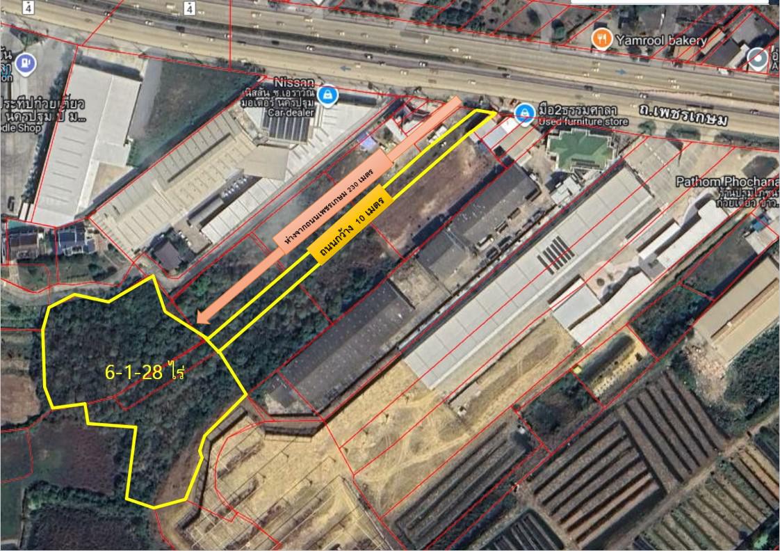 ขายที่ดินเปล่าเนื้อที่ 6-1-28ไร่ (ผังสีชมพู)ห่างจากถนนเพชรเกษม230เมตร (ถนนทางเข้ากว้าง10 เมตร) อยู่ ต.ธรรมศาลา อ.เมืองนครปฐม อยู่ติดกับศูนย์รถNissan ช.เอราวัณ ตรงข้ามศูนย์ฟอร์ดเช้ง ใกล้วัดธรรมศาลา ห่างจากห้างเซ็นทรัลนครปฐม 8 กม.