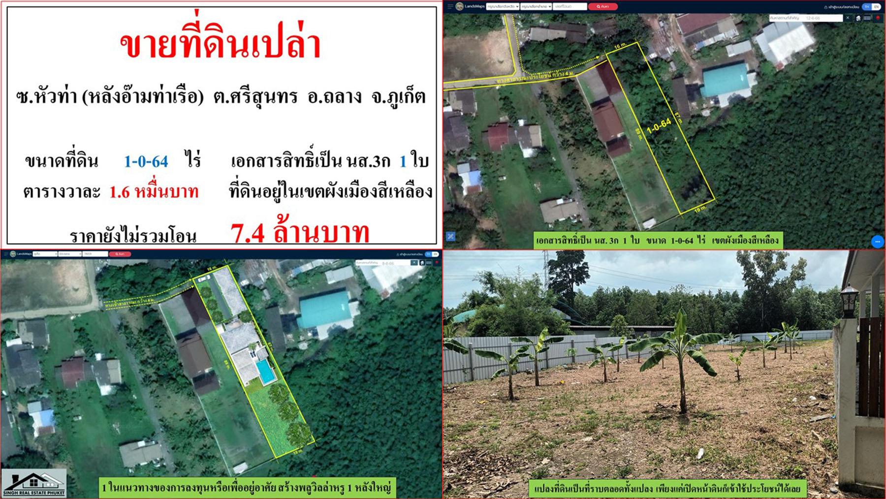 ขายที่ดินเปล่า ขนาด 1-0-64 ไร่ ซ.หัวท่า(หลังอ๊ามท่าเรือ) ต.ศรีสุนทร อ.ถลาง ภูเก็ต