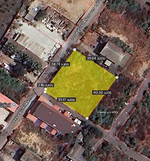 - ติดถนนซอยเมน 38 เมตร ติดถนนซอยรอง 39 เมตร ท้ายที่กว้าง 40 เมตร
