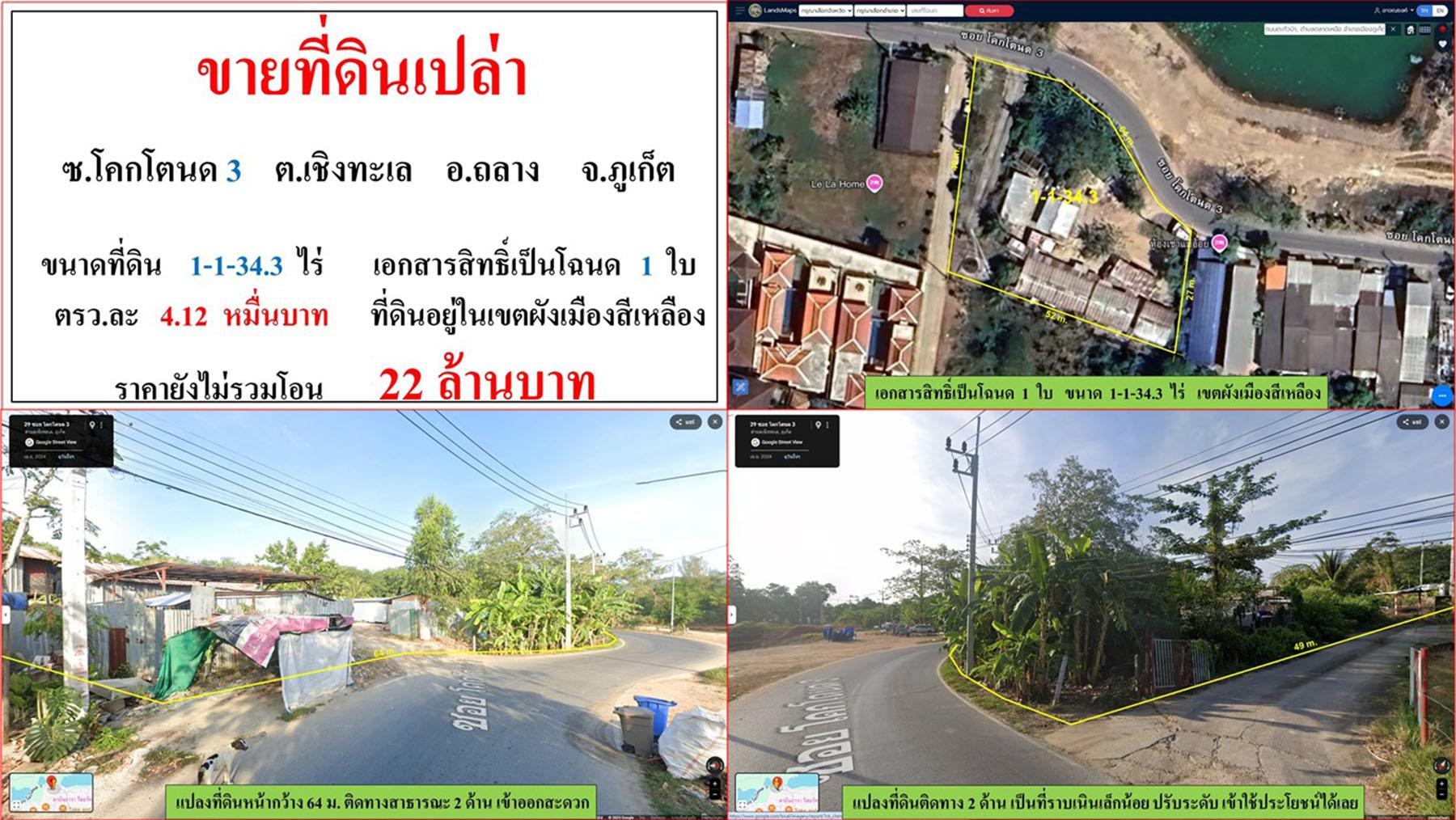 ขายที่ดินเปล่า ขนาด 1-1-34.3 ไร่ ซ.โคกโตนด 3 ต.เชิงทะเล อ.ถลาง ภูเก็ต