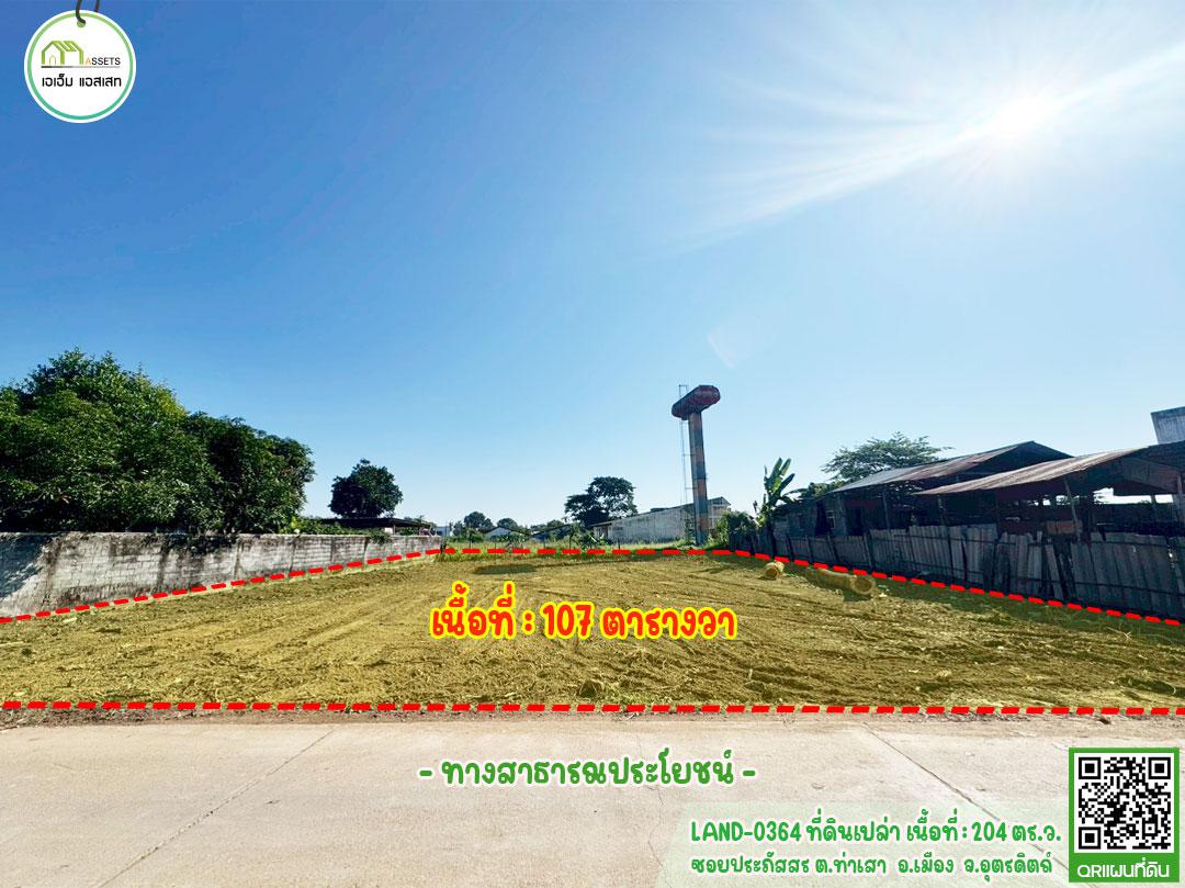 # รหัสทรัพย์ : LAND–0364 ที่ดินเปล่า # เนื้อที่ : 204 ตารางวา#ที่ตั้ง : ซอยประภัสสร ต.ท่าเสา อ.เมือง จ.อุตรดิตถ์ #รายละเอียด : ที่ดินรูปแปลง 4 เหลี่ยมสวยๆ ทำเลดี หน้ากว้างติดถนนคอนกรีต ถมดินแล้ว ในซอยประภัสสร แหล่งชุมชน ใกล้ โลตัสอุตรดิตถ์,การไฟฟ้าภูมิภาคอุตรดิตถ์,โรงเรียน,โรงแรม,รีสอร์ท,ปั๊มน้ำมัน,ร้านค้า,ร้านอาหาร,คาเฟ่ และอื่นๆรอบๆบริเวณมีเพื่อนบ้าน ไม่เปลี่ยว พร้อมสาธารณูปโภคต่างๆ เหมาะสำหรับสร้างบ้านพักอาศัย หรือซื้อเก็บไว้ในอนาคตก็ดีครับแปลงนี้ เอกสารสิทธิ์โฉนดครุฑแดงพร้อมโอน ราคาพิเศษมากๆ ติดสินใจซื้อช่วงเวลานี้คุ้มมากๆครับ
