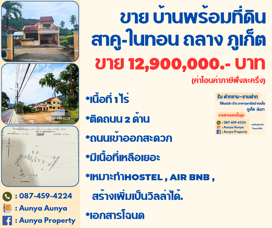 Tel.087-459-4224 ขาย #บ้านพร้อมที่ดิน #สาคูในทอน ถลาง ภูเก็ต