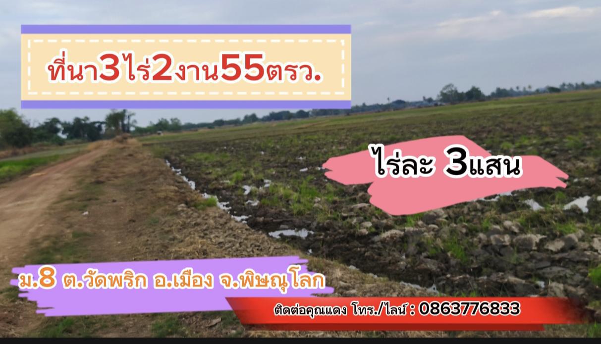 ที่ดิน 3ไร่2งาน55ตรว. ม.8 ต.วัดพริก อ.เมืองพิษณุโลก