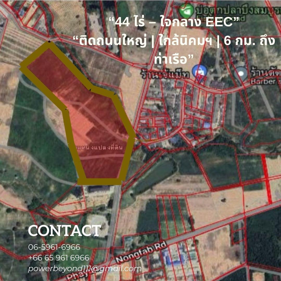 ขายที่ดินผังสีม่วง (EEC) 44 ไร่ ทำเลทองใกล้นิคมอุตสาหกรรมมาบตาพุด จังหวัดระยอง เหมาะสำหรับสร้างโรงงาน, คลังสินค้า (Warehouse), หรือลานพักตู้คอนเทนเนอร์