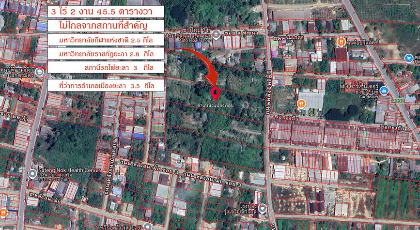 เจ้าของขายเอง ขายที่ดิน 3 ไร่ 2 งาน 45.5 ตารางวา สะเตงนอก อำเภอเมืองยะลา ใกล้สถานที่สำคัญ