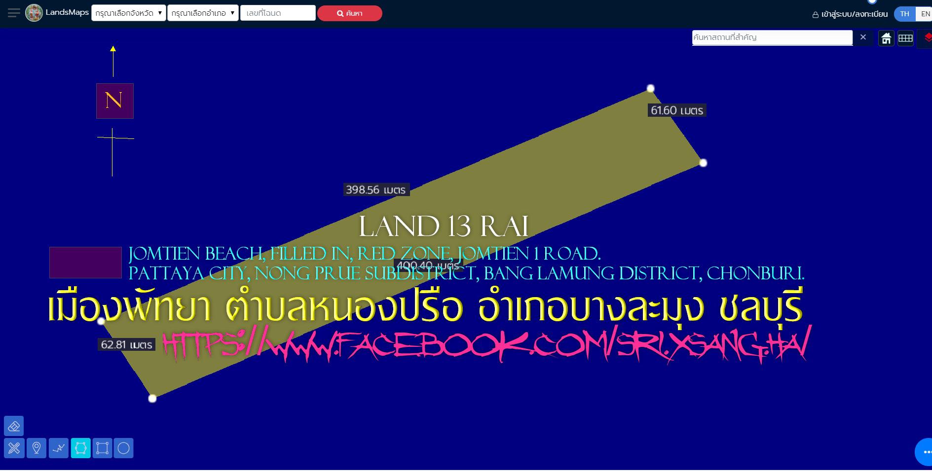 ขายที่ดิน 13ไร่ หาดจอมเทียน ถมแล้ว พื้นที่สีแดง ถนนจอมเทียนสายหนึ่ง เมืองพัทยา ตำบลหนองปรือ อำเภอบางละมุง ชลบุรี