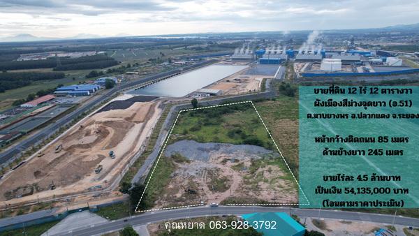 ขายที่ดิน 12 ไร่ ผังเมืองสีม่วงจุดขาว ติดถนนหน้ากว้าง 85 ม. หลังโรงไฟฟ้าปลวกแดง