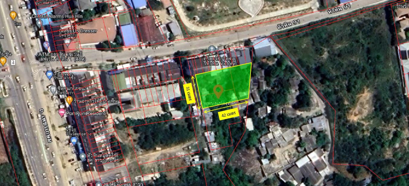 ที่ดินติดอยู่ในซอยหัวหิน 91 เข้าจากถนนเพชรเกษมประมาณ 130 เมตร ถนนหน้าที่ดินกว้างประมาณ 10 เมตร ที่ดินหน้ากว้างด้านติดถนนประมาณ 31 เมตร ยาวประมาณ 42 เมตร อยู่ห่างจากชายทะเลประมาณ 1.2 กม. ห่างจากสวนน้ำวานานาวาวอเตอร์ ประมาณ 1.3 กม. ห่างจากอุทยานราชภักดิ์ประมาณ 2.3 กม.