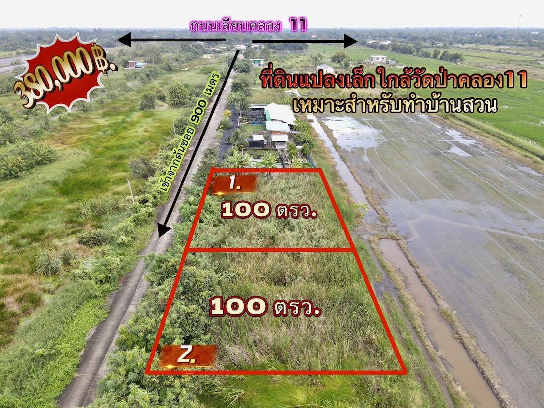 ที่ดินคลอง 11 หนองเสือ ปทุมธานี แปลงเล็กราคาถูก 100 ตรว. เพียง 360,000 บาท