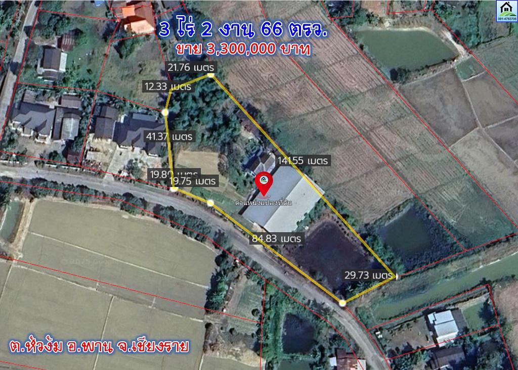 เสนอขายทรัพย์สวย พร้อมใช้งาน ทั้งอยู่อาศัยและทำธุรกิจ บนพื้นที่ขนาด 3 ไร่ 2 งาน 66 ตารางวา ตั้งอยู่ในตำบลหัวง้ม อำเภอพาน จังหวัดเชียงราย ทำเลดี ใกล้ชุมชน และติดถนนหน้ากว้างกว่า 104 เมตร