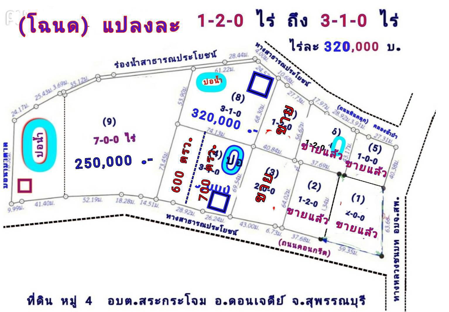 ● ที่ดิน ม.4 (เข้าซอยวัดหนองกะมาน ประมาณ 1 กม.) ต.สระกระโจม อ.ดอนเจดีย์ จ.สุพรรณบุรี