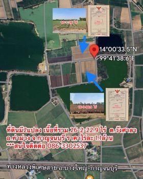ขายที่ดินสวย2แปลง ทำเลดี เนื้อที่รวมกัน 26-2-22.9ไร่ อยู่ต.วังศาลา อ.ท่าม่วง จ.กาญจนบุรี ราคาเหมารวม2แปลง 29,200,000บาท(ไร่ละ 1,100,000บาท)