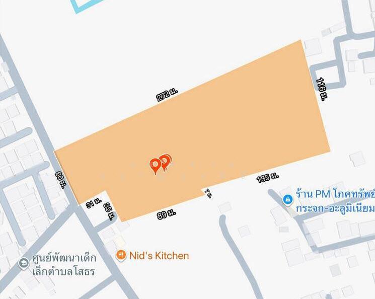 หน้ากว้างที่ดินติดริมถนนประมาณ 60 เมตร ส่วนที่ลึกสุดประมาณ 272 เมตร