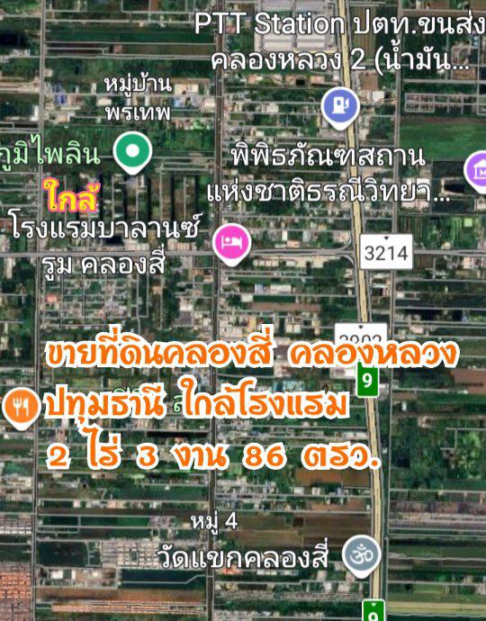 ขายที่ดินคลองสี่ ใกล้ถนนคลองหลวง ถนนเลียบคลองสี่ 2 ไร่ 3 งาน 86 ตรว