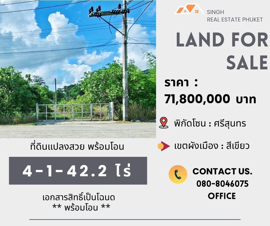 ** LAND FOR SALE ** ที่ดินเปล่า 4-1-42.2 ไร่ ( เขื่อนบางเหนียวดำ - ศรีสุนทร )