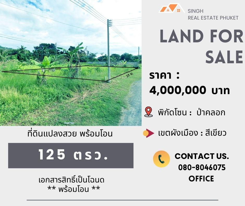 ** LAND FOR SALE ** ที่ดินเปล่า 125 ตรว. ( ซอยนายาว - ป่าคลอก )