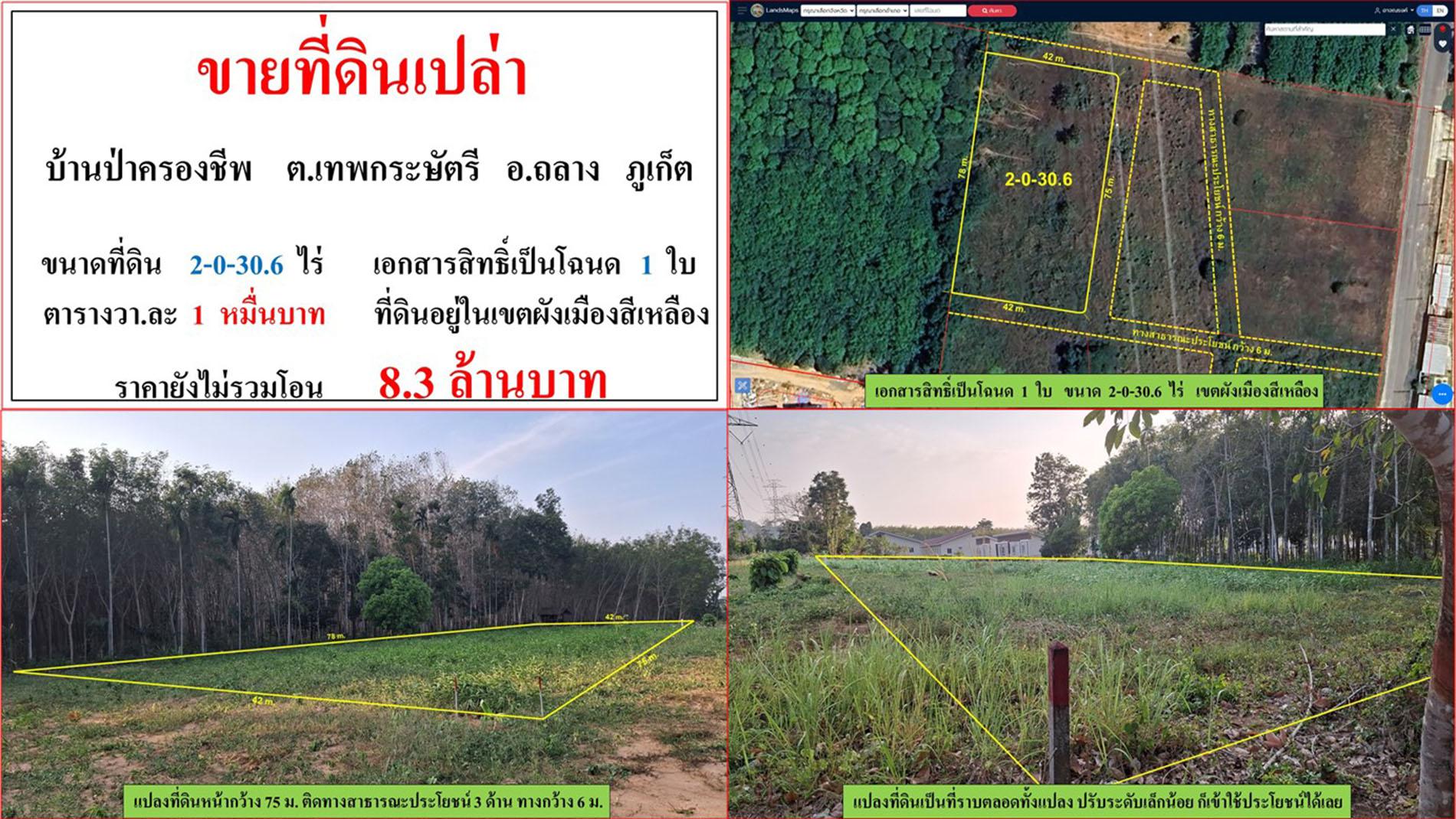ขายที่ดินเปล่า ขนาด 2-0-30.6 ไร่ บ้านป่าครองชีพ ต.เทพกระษัตรี อ.ถลาง ภูเก็ต