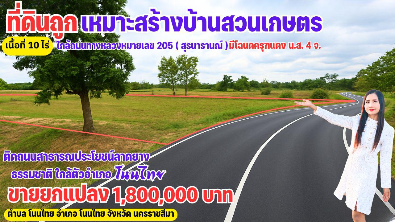 ที่ดินสร้างบ้านสวนเกษตรยามเกษียร ยกแปลง 10 ไร่ ใกล้ตัวอำเภอโนนไทย โคราชบ้านฉัน