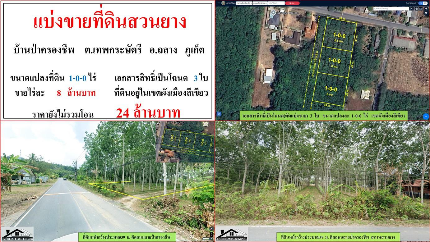 แบ่งขายที่ดินสวนยาง ขนาด 1-0-0 ไร่ บ้านป่าครองชีพ ต.เทพกระษัตรี อ.ถลาง ภูเก็ต