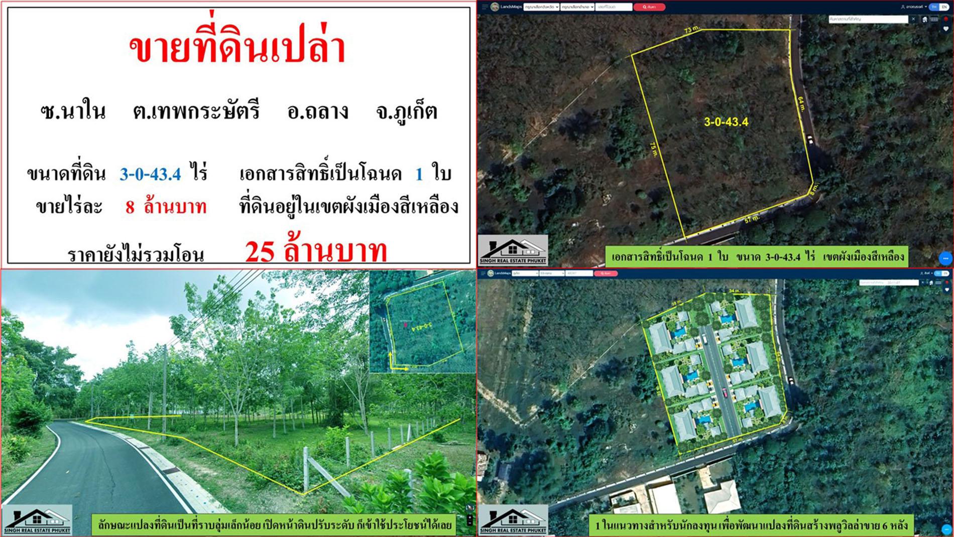 ขายที่ดินเปล่า ขนาด 3-0-43.4 ไร่ ซ.นาใน ต.เทพกระษัตรี อ.ถลาง ภูเก็ต