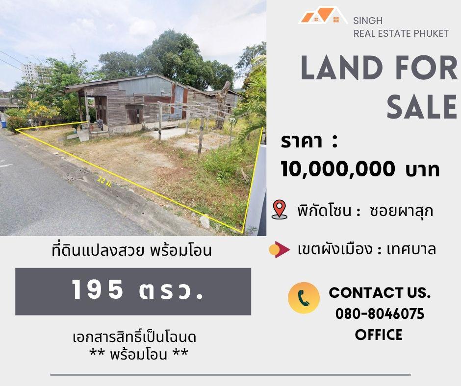 ** LAND FOR SALE ** ที่ดินเปล่า 195 ตรว. ( ซอยผาสุข - เทศบาลเมือง )