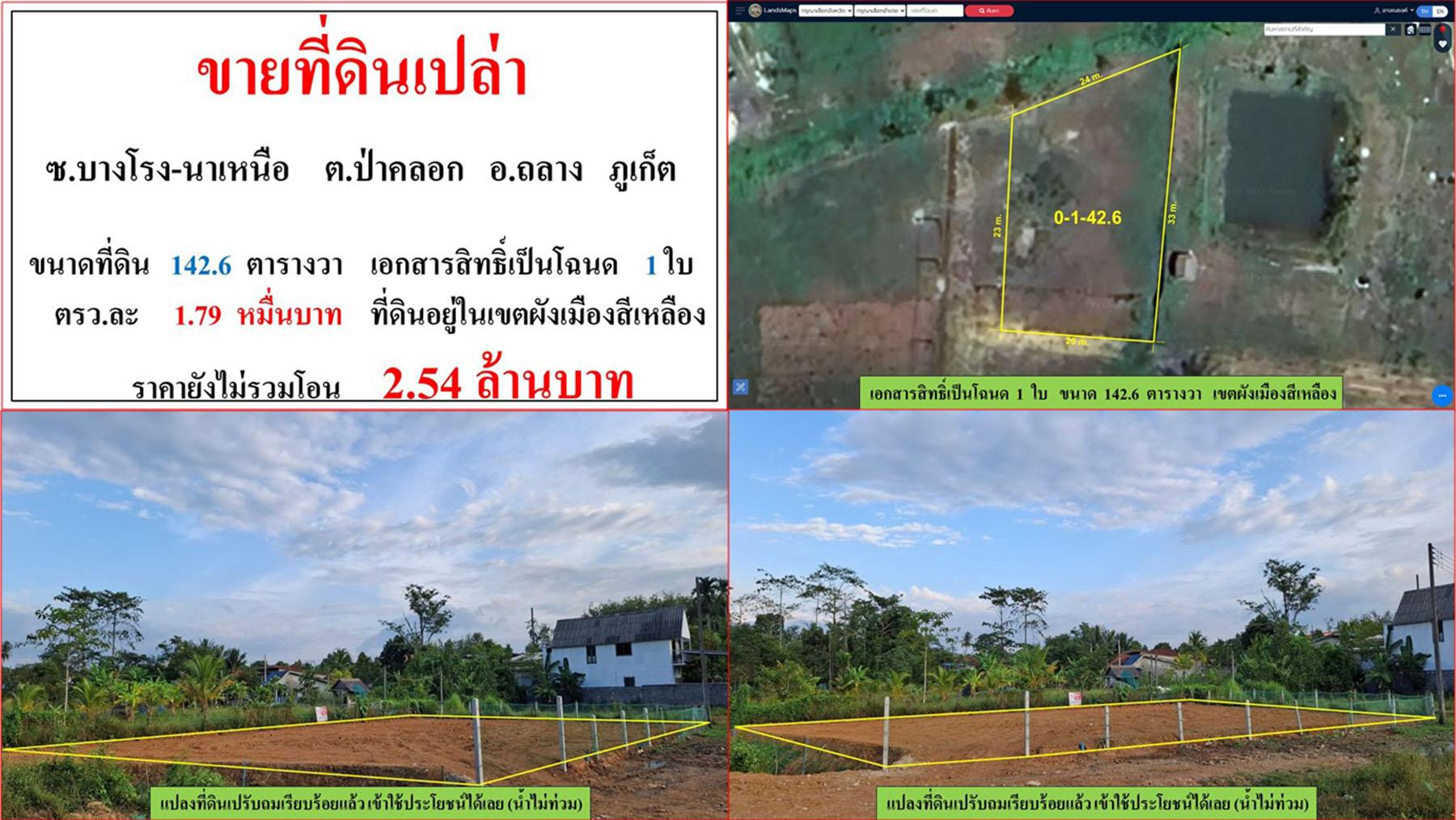 ขายที่ดินเปล่า ขนาด 142.6 ตรว. ซ.บางโรง-นาเหนือ ต.ป่าคลอก อ.ถลาง ภูเก็ต