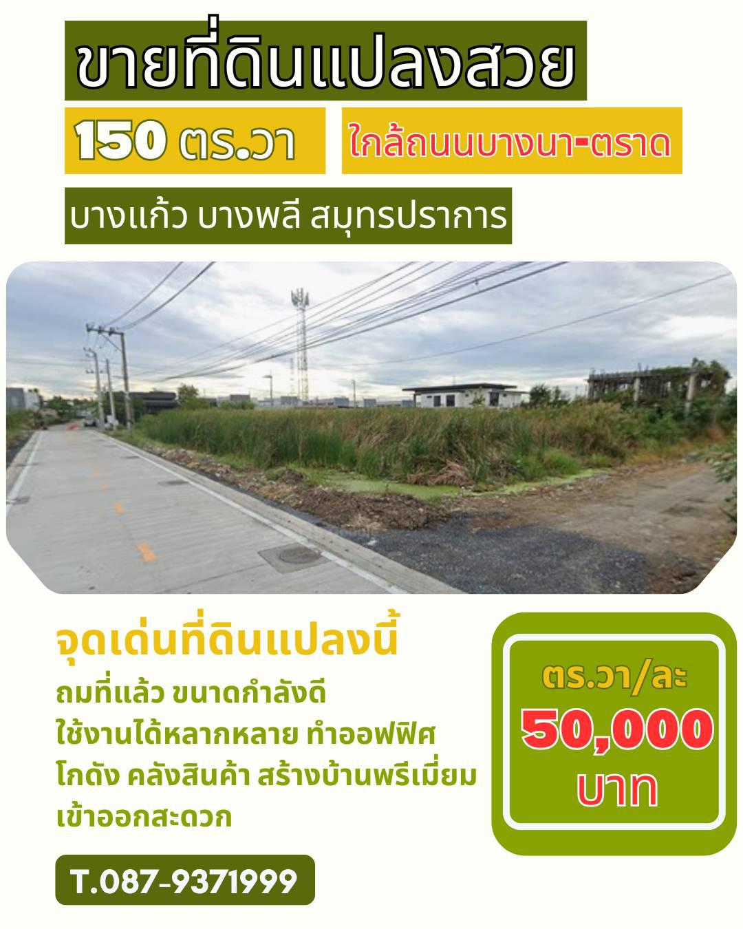 ขายด่วน! ที่ดิน 150 ตร.วา ทำเลบางแก้ว–บางพลี สมุทรปราการ