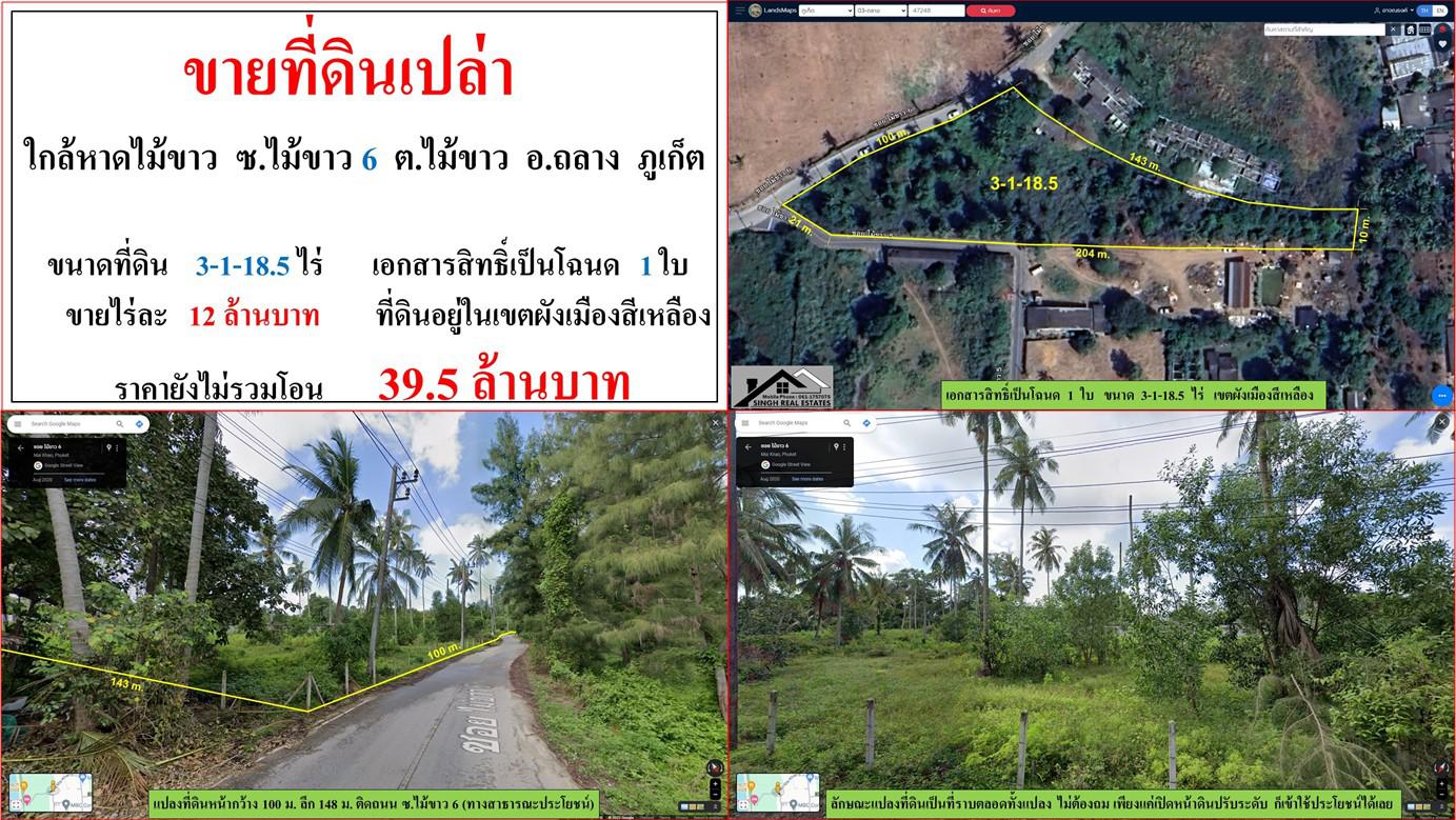 ขายที่ดินเปล่า ขนาด 3-1-18.5 ไร่ ใกล้หาดไม้ขาว ซ.ไม้ขาว 6 ต.ไม้ขาว อ.ถลาง ภูเก็ต