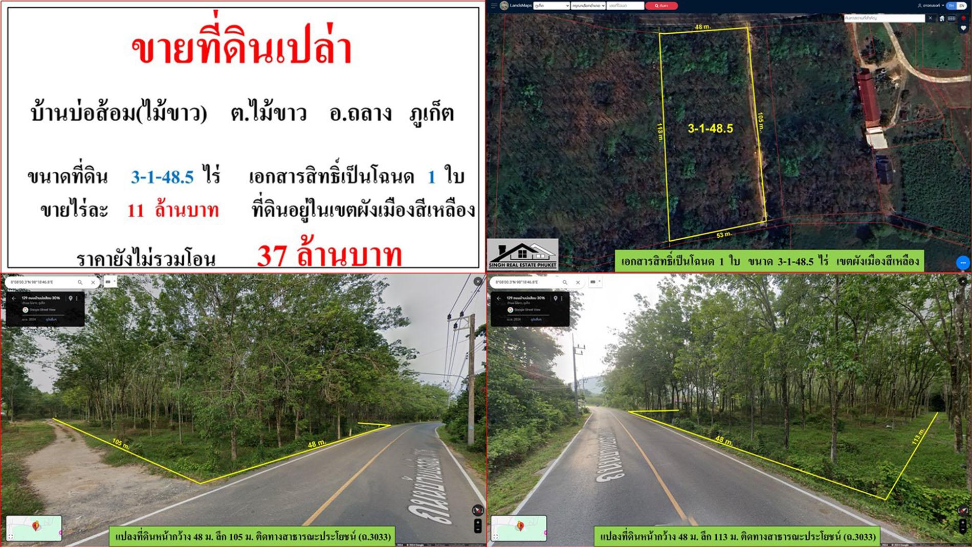 ขายที่ดินเปล่า ขนาด 3-1-48.5 ไร่ บ้านบ่อส้อม(ไม้ขาว) ต.ไม้ขาว อ.ถลาง ภูเก็ต