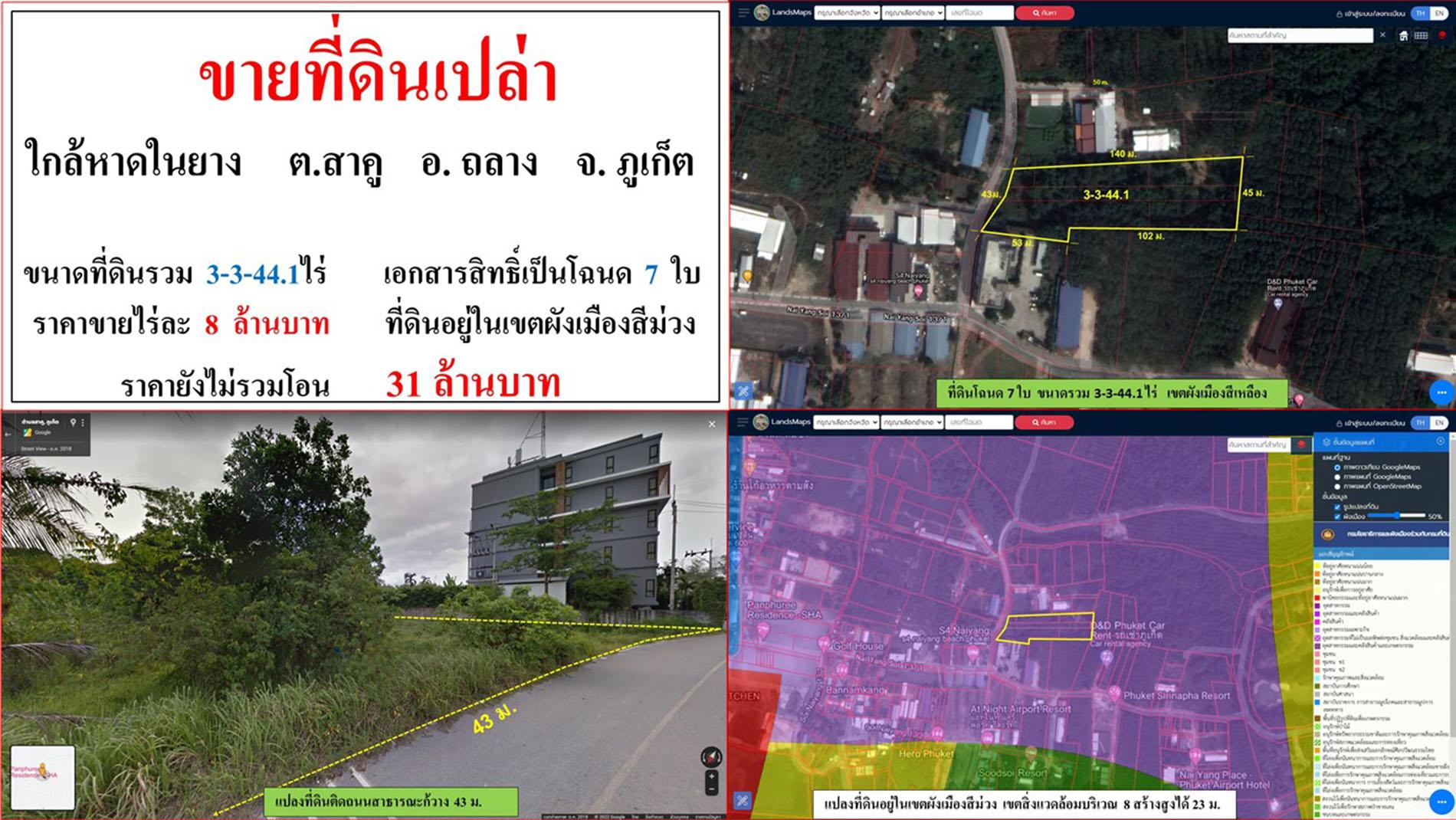 ขายที่ดินเปล่า ขนาด 3-3-44.1 ไร่ ใกล้หาดในยาง ต.สาคู อ.ถลาง ภูเก็ต