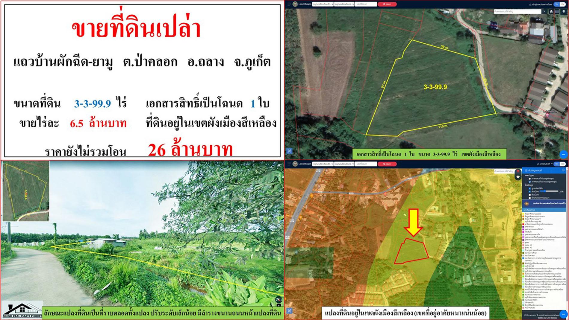 ขายที่ดินเปล่า ขนาด 3-3-99.9 ไร่ แถวบ้านผักฉีด-ยามู ต.ป่าคลอก อ.ถลาง ภูเก็ต