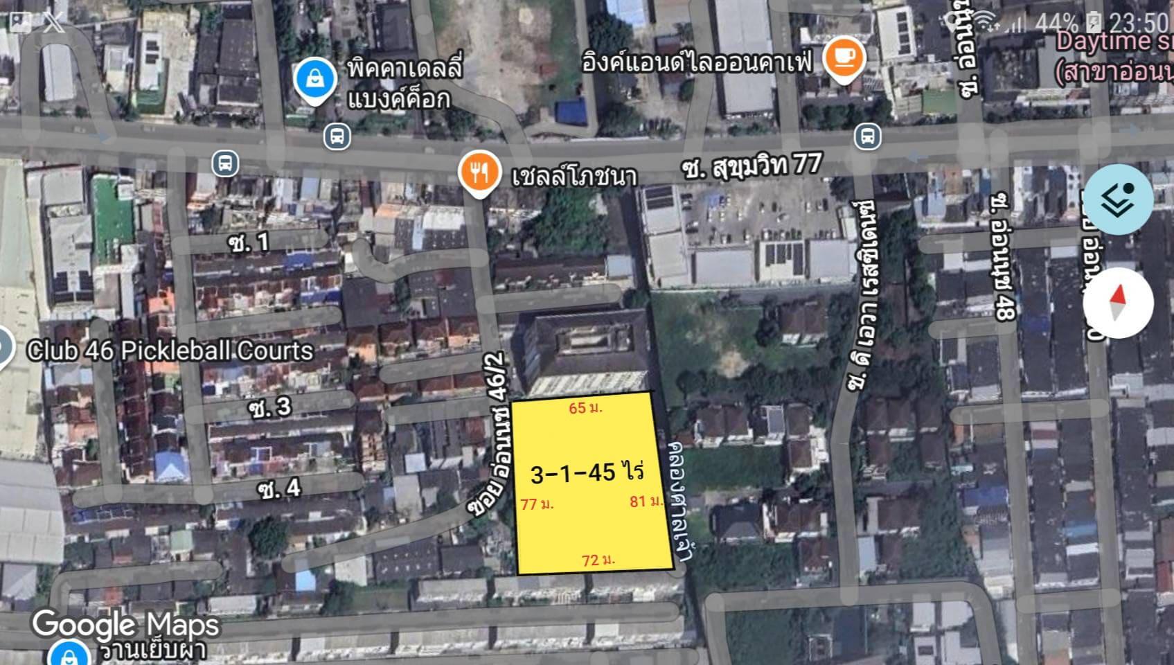 ขายที่เปล่าถมแล้ว 3-1-45 ไร่ สุขุมวิท 77 ถ.อ่อนนุช ซอย 46/2 ใกล้สถานีรถไฟฟ้า ศรีนุช แขวงสวนหลวง เขตสวนหลวง กรุงเทพๆ