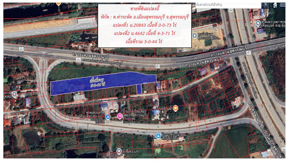 ขายที่ดิน 5 ไร่ ถ.เลี่ยงเมืองสุพรรณบุรีและถนน 340 ใกล้โรบินสันสุพรรณบุรี
