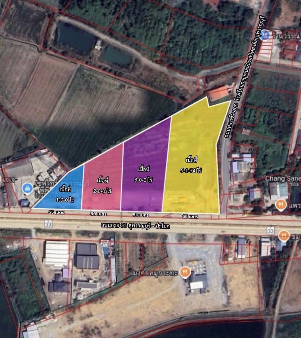 ที่ดินติดถนนใหญ่สาย 33 สุพรรณบุรี-ป่าโมก เดินทางสะดวก