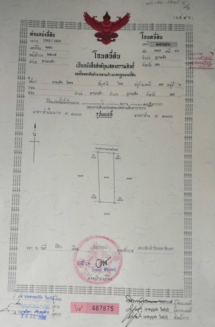 ที่ดินโฉนด 218 ตรว. ต.ผานกเค้า อ.ภูกระดึง จ.เลย