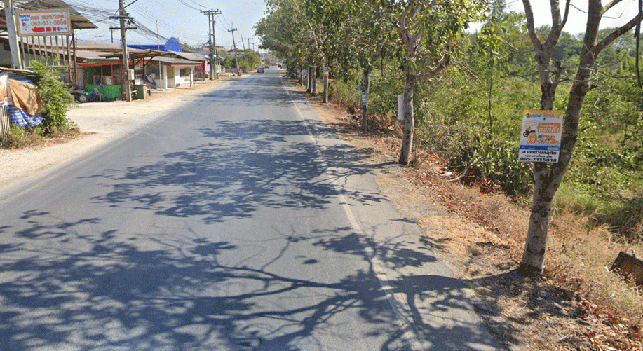 ที่ดินติดถนนลาดยาง หน้ากว้างประมาณ 111 เมตร ลึกประมาณ 724 เมตร ด้านหลังกว้างประมาณ 113 เมตร ที่ดินต่ำกว่าถนนประมาณ 1 เมตร