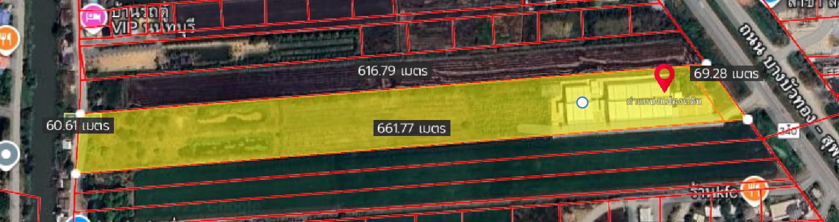 • ที่ดินผืนใหญ่ 23 ไร่กว่า ติดถนนหลักบางบัวทอง–สุพรรณบุรี