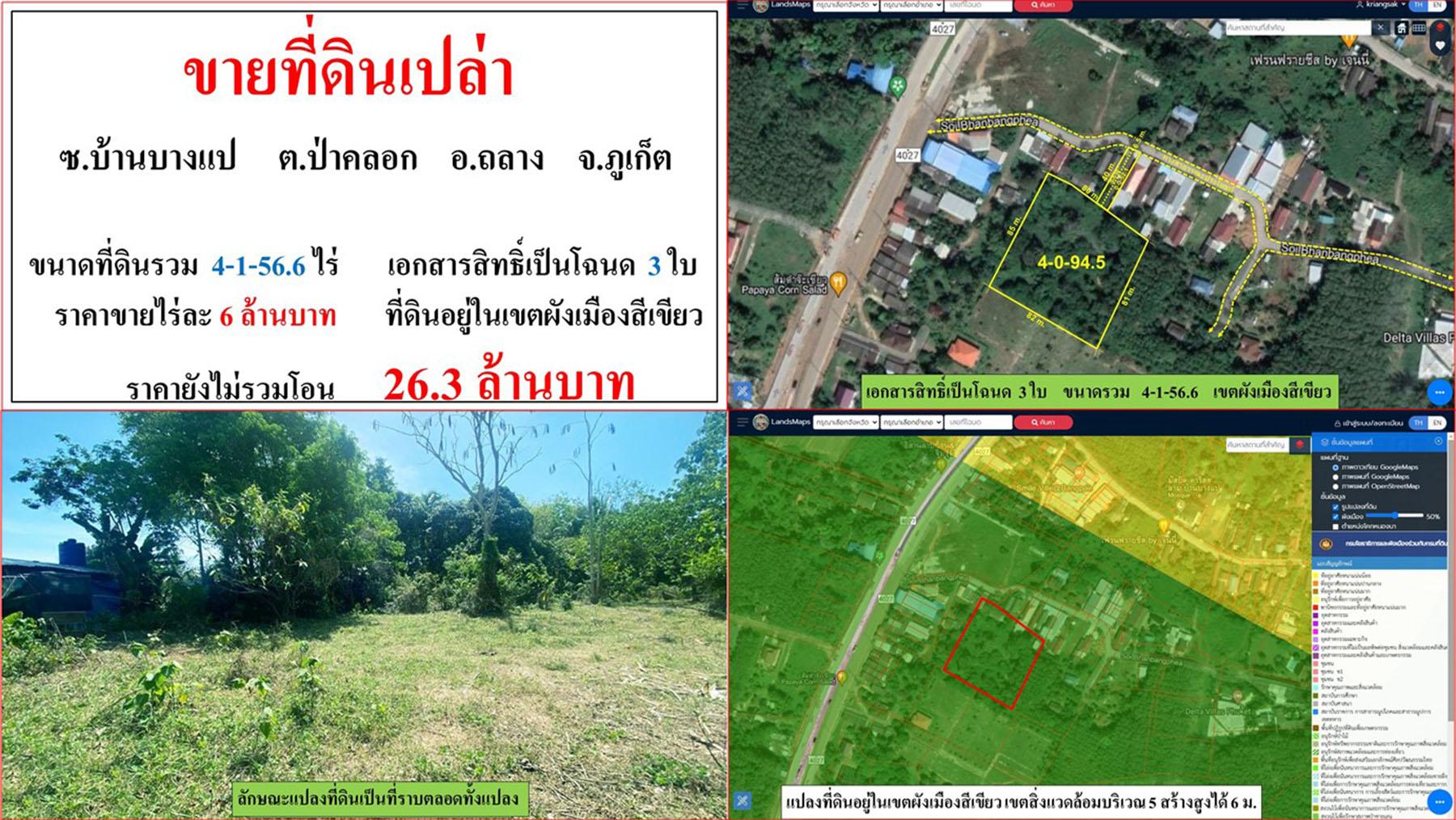 ขายที่ดินเปล่า ขนาด 4-1-56.6 ไร่ ซ.บ้านบางแป ต.ป่าคลอก อ.ถลาง ภูเก็ต