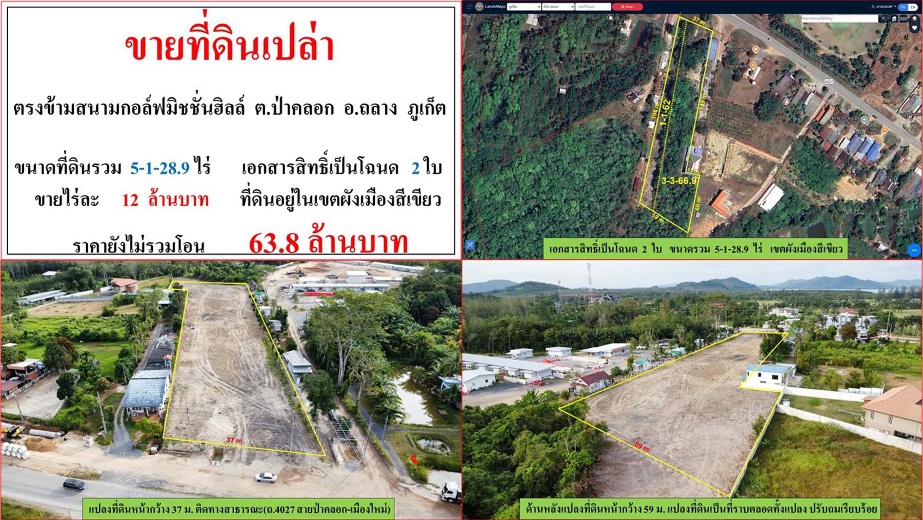 ขายที่ดินเปล่า ขนาด 5-1-28.9 ไร่ ตรงข้ามสนามกอล์ฟมิชชั่นฮิลล์ ต.ป่าคลอก อ.ถลาง ภูเก็ต