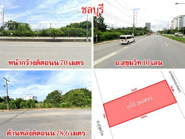 ที่ดินแหลมฉบัง ชลบุรี ติดถนนสุขุมวิท เนื้อที่ 10 ไร่ ใกล้รพ.วิภารามแหลมฉบัง เยื้องนิคมอุตสาหกรรมแหลมฉบัง เดินทางสะดวก