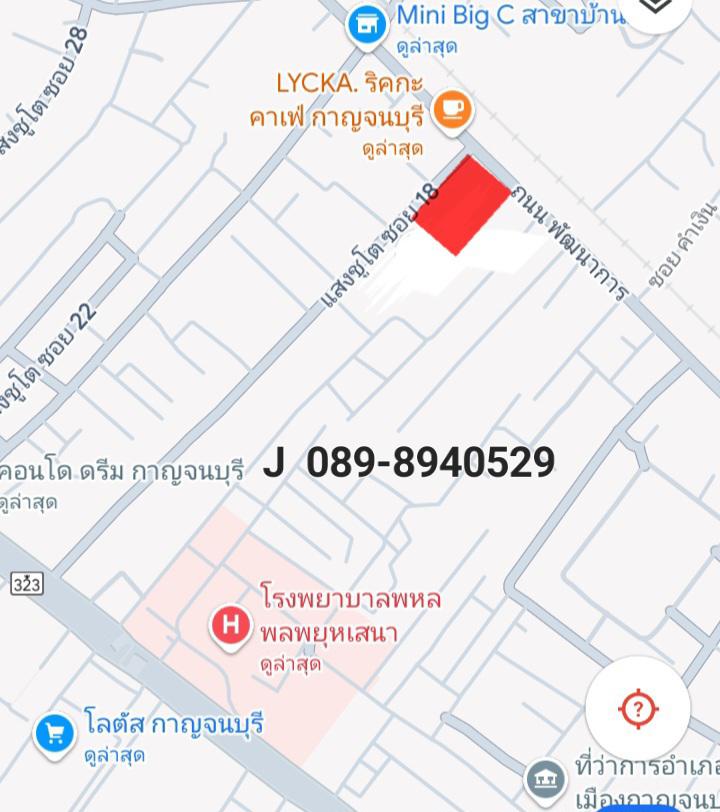 ขายที่ดินติดถนน180 ม.ซอยใหญ่ 5ไร่ข้างรพ. พหล(รัฐใหญ่สุดของกาญ/กำลังก่อสร้างอาคารจอดรถ10ชั้น)เหมาะทำรพ./ตลาด