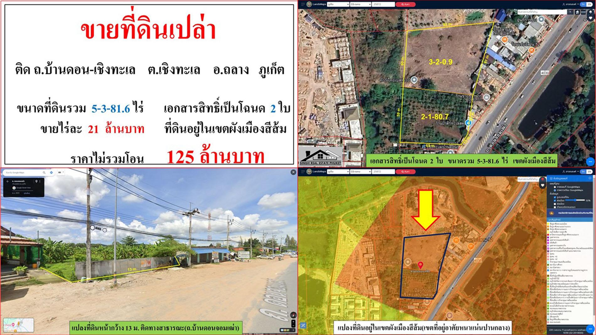 ขายที่ดินเปล่า ขนาด 5-3-81.6 ไร่ ติด ถ.บ้านดอน-เชิงทะเล ต.เชิงทะเล อ.ถลาง ภูเก็ต