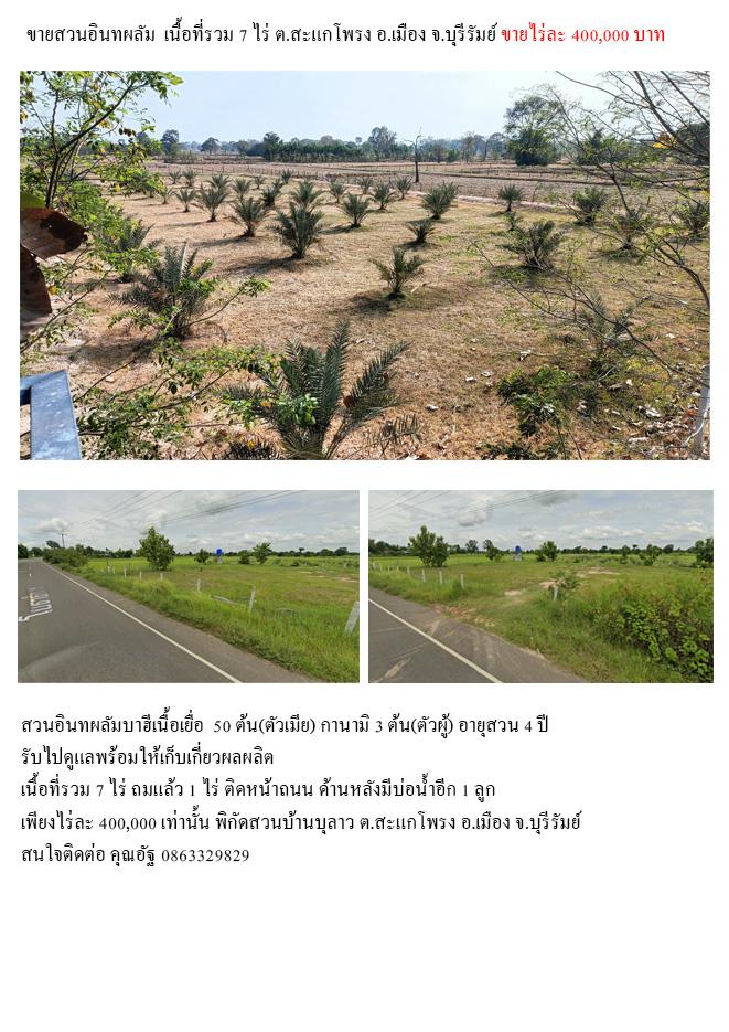 ขายที่ดินสวนอินทผลัม 7 ไร่ สวนบ้านบุลาว ต.สะแกโพรง อ.เมือง จ.บุรีรัมย์